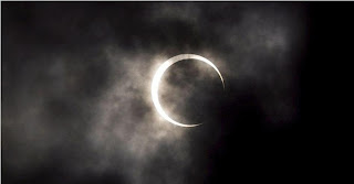 "Em Tangerang, na província indonésia de Bantent, habitantes puderam ver um eclipse total do sol nesta segunda-feira. Às 15h46 (hora local) o sol ficou completamente encoberto".